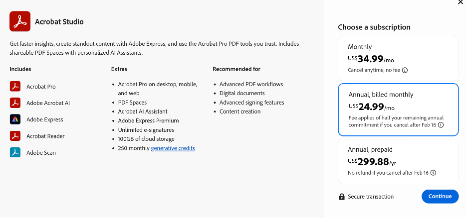 Also in here is their PDF editor, Acrobat solutions.