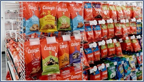 As a way to further improve profitability and compete with local grocery stores, Casey’s expanded their grocery selection and introduced their own private label in 2021. While they started out with only a handful of SKUs, it quickly grew to over 300, encompassing everything from bakery items and nuts to meat snacks and drinks.