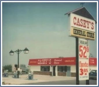 In 1959, Don Lamberti, an Iowa native, worked at his parent’s country store with a gas station in Des Moines. The person who Don bought gas from was a man named Kurvin C. Fish, and one day he suggested the two of them buy a few local gas stations, which were being sold together. There were four gas stations in the deal, and they only needed to put $40k down. Fearing that people might discriminate against Lamberti’s Italian last name, they wanted to call the store something generic. Casey’s was picked after Kurvin’s initials of “K.C.”. One of the four properties they ran had a convenience store added to it, marking the creation of the first Casey’s in 1968. It was an instant success, generating in the first year what they thought it would take three years to make.