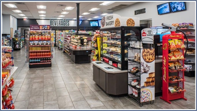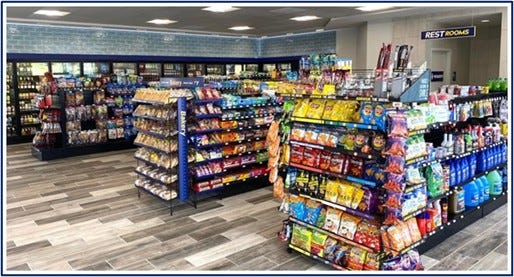 Each convenience store carries about 3,000 SKUs and sells a broad selection of snacks, beverages, tobacco and nicotine products, groceries, health & beauty aids, automotive products, and other non-food items.