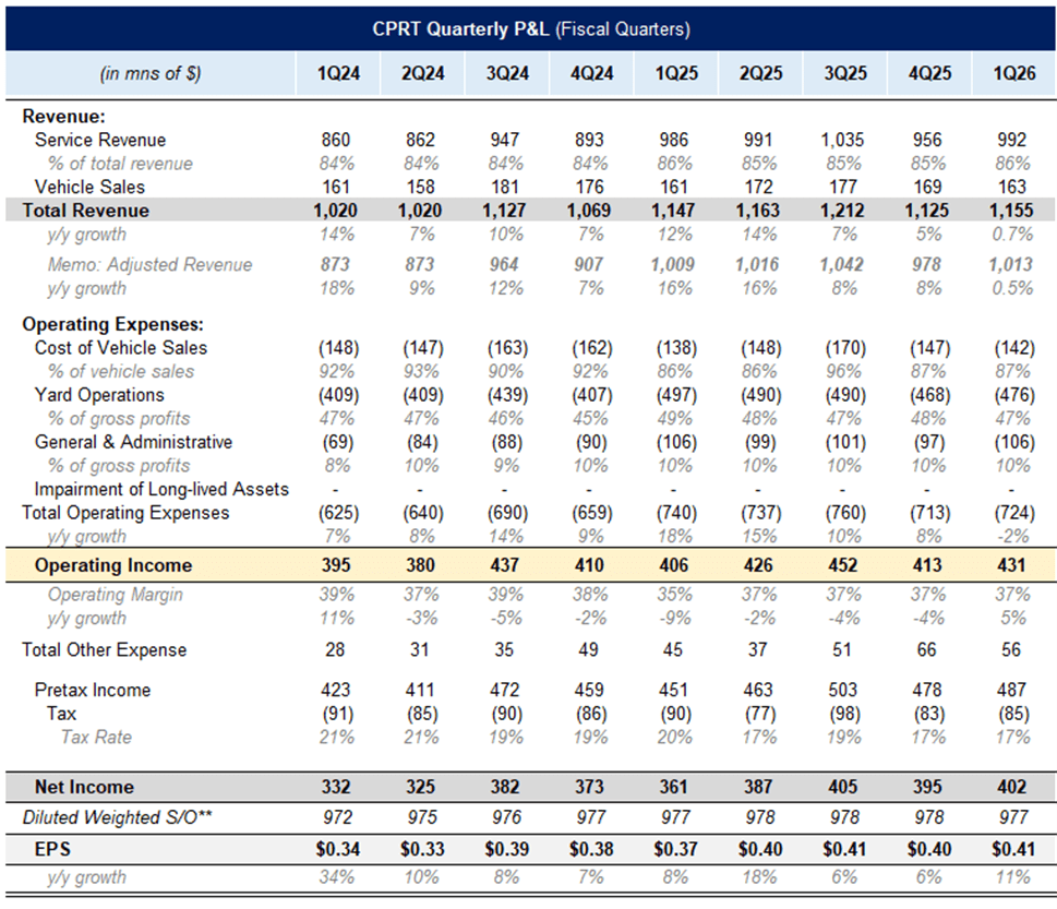 *At the time of this writing, one or more contributors to this report has a position in CPRT. Furthermore, accounts one or more contributors advise on may also have a position in CPRT. This may change without notice.