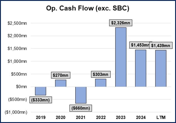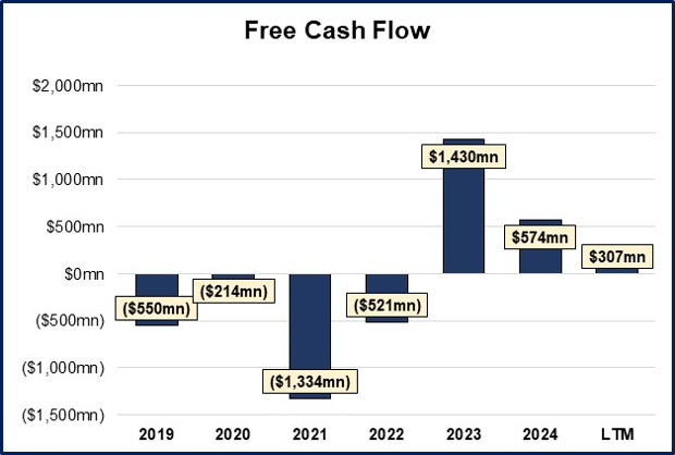 Operating cash flow was down y/y as they had positive working capital dynamics in the comp period. Free cash has compressed as they increase capex.