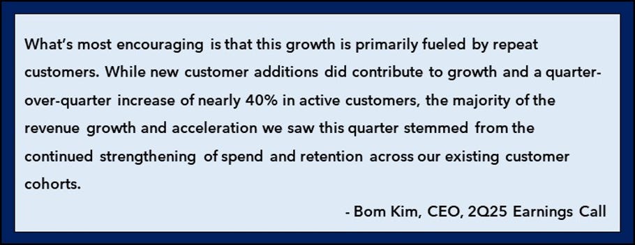 Sales continue to be driven by existing customers, increasing their activity on Coupang.