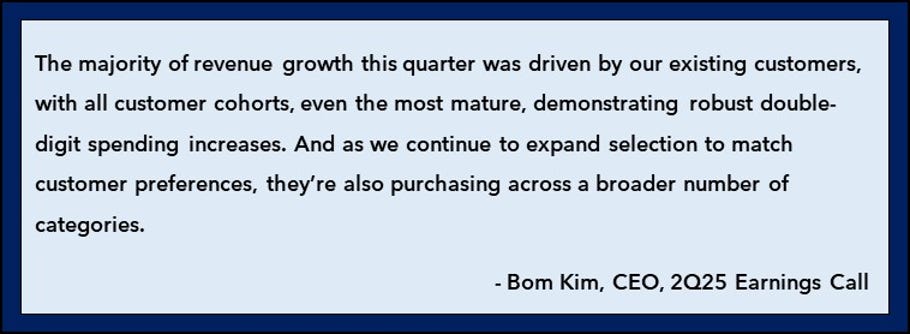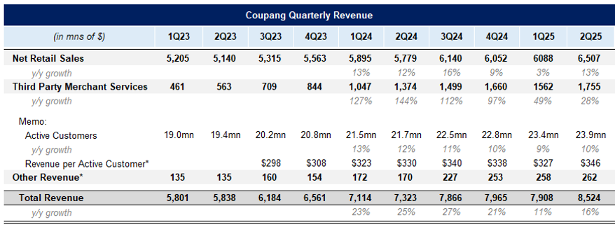 Coupang reported 2Q25 earnings and net revenues grew +16% y/y, or +19% y/y on a FXN basis.