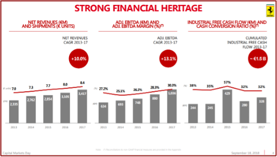 From 2013 to 2017 Ferrari grew revenues 10% annually, but increased shipments by only 5%. They set out the ambitious goal to grow EBIT to €1.2bn by 2022, about 50% higher than the €820mn they would end 2018 with.