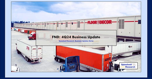 Become a Speedwell Research Member to receive our Floor & Decor report and all of our other in-depth research reports, shorter exploratory reports, updates, and Plus members also receive Excels.