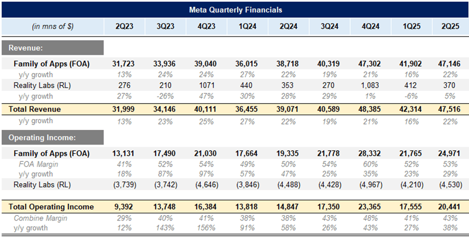 Meta reported a very strong 2Q25 and the stock popped +10% after hours.