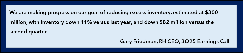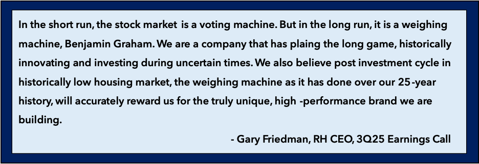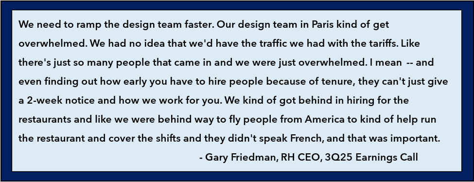 RH reported 3Q25 results and the stock was up +6% the next day.