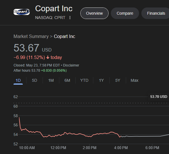 Copart fell -11% on Friday after reporting earnings. For the first time they potentially lost market share. Learn more here: CPRT 3Q25 Business Update
