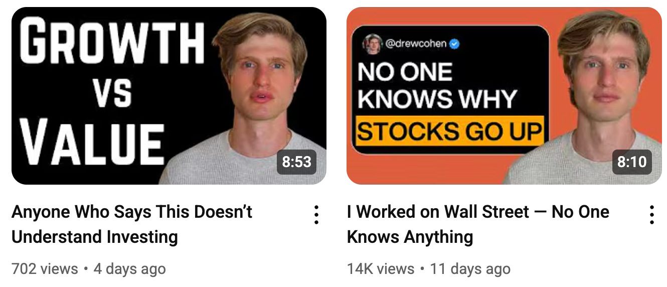 Check out Speedwell Research’s Drew Cohen’s YouTube Channel. It is focused on general investing and business content.