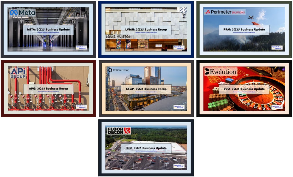 This week, we released several 3Q25 business updates on CoStar, Meta, Floor & Decor, APi Group, and Perimeter Solutions.
