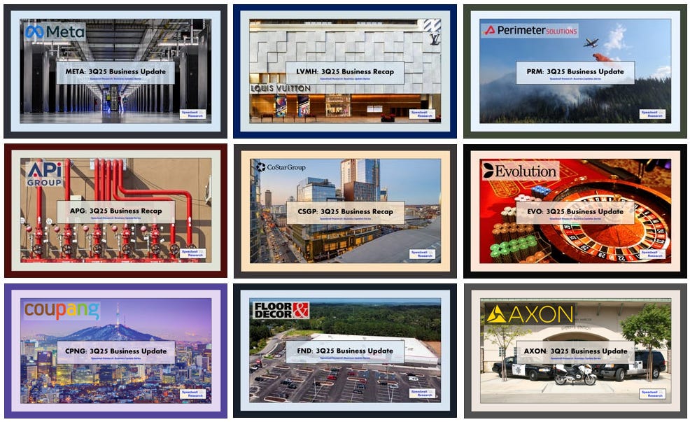 This is in addition to the other 3Q25 business updates we have written on so far this earnings season: LVMH, Evolution, CoStar, Meta, Floor & Decor, APi Group, and Perimeter Solutions.